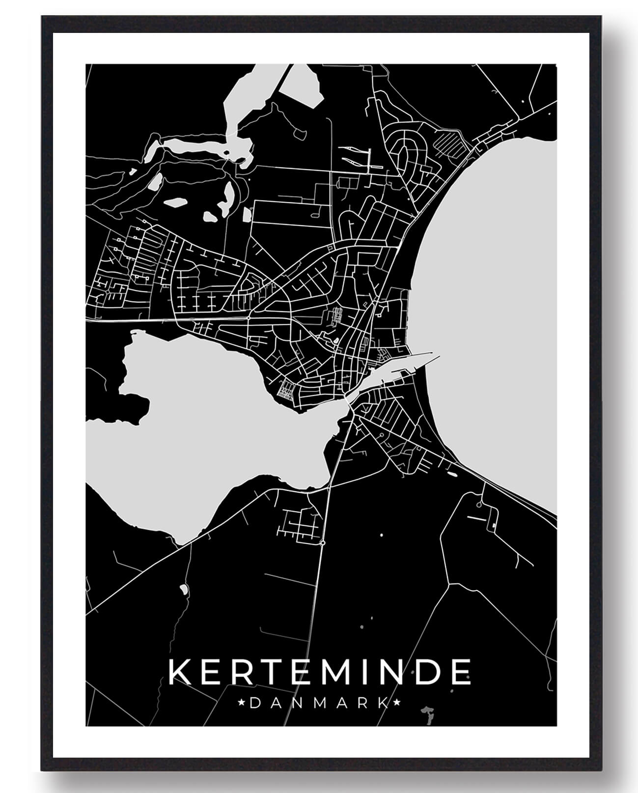 Vi har fundet Kerteminde By Plakat – Sort fra Plakatdyr.dk hos Plakatdyr.dk i kategorien Kerteminde. Kerteminde plakat En Kerteminde plakat er en stilfuld og minimalistisk illustration af byen set fra oven lidt ligesom vi kender det fra gamle landkort. Den er en del af en større serie af byplakater, der er lavet, så alle kan hylde og værdsætte deres hj