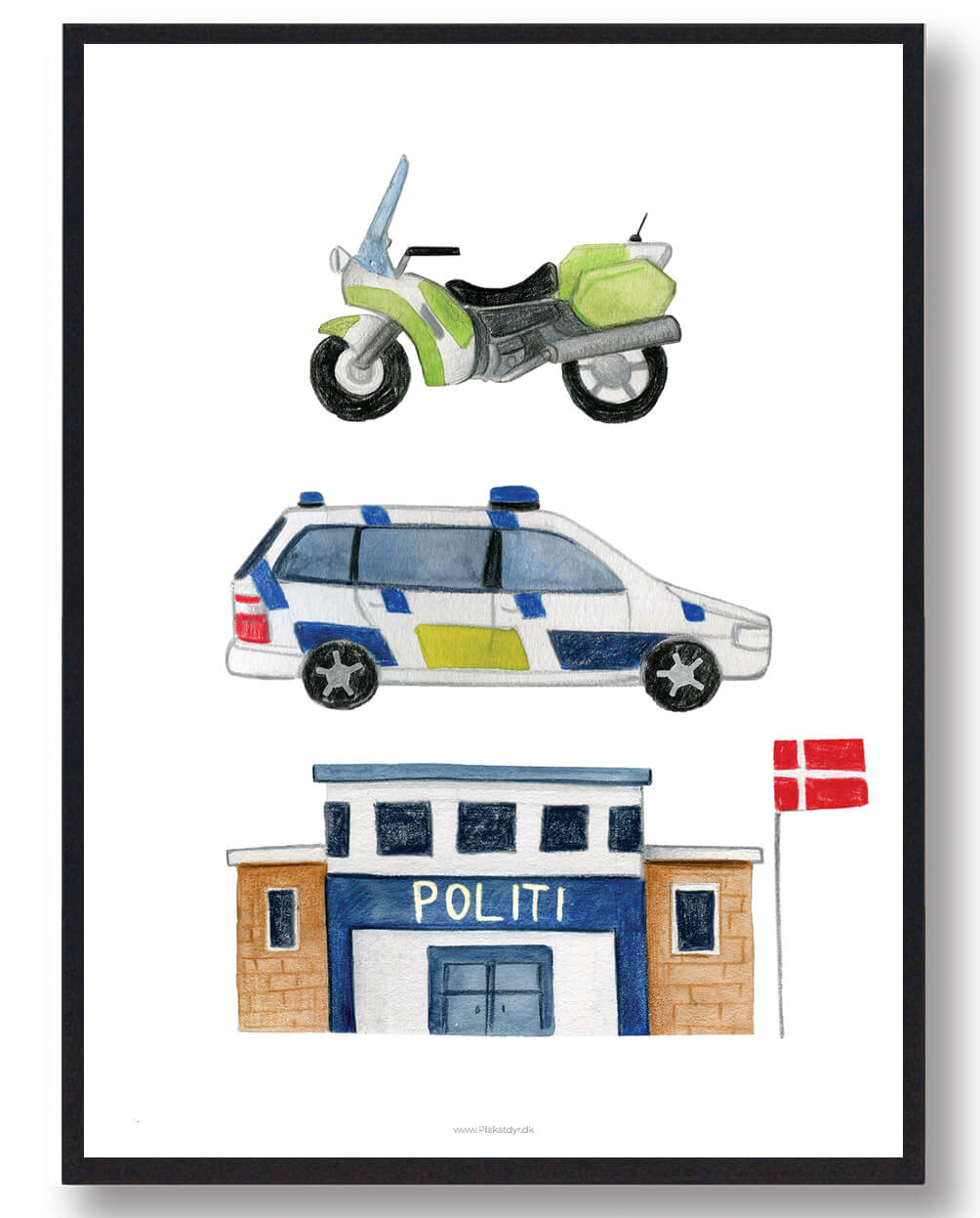 Vi har fundet Politistation – Håndtegnet Plakat fra Plakatdyr.dk hos Plakatdyr.dk i kategorien Plakater Til Børneværelset: Håndtegnede Plakater. Viiiiuuuu, viiiiiu, viiiiiiiuu!. Børn taber fuldstændig næse og mund, når der kommer sådan en flot politibil kørende med sirenen for fuld drøn. De er fuldstændig forgabt i alt, hvad der hedder politi, og derfor var vi ikke i tvivl om, at denne super skønn