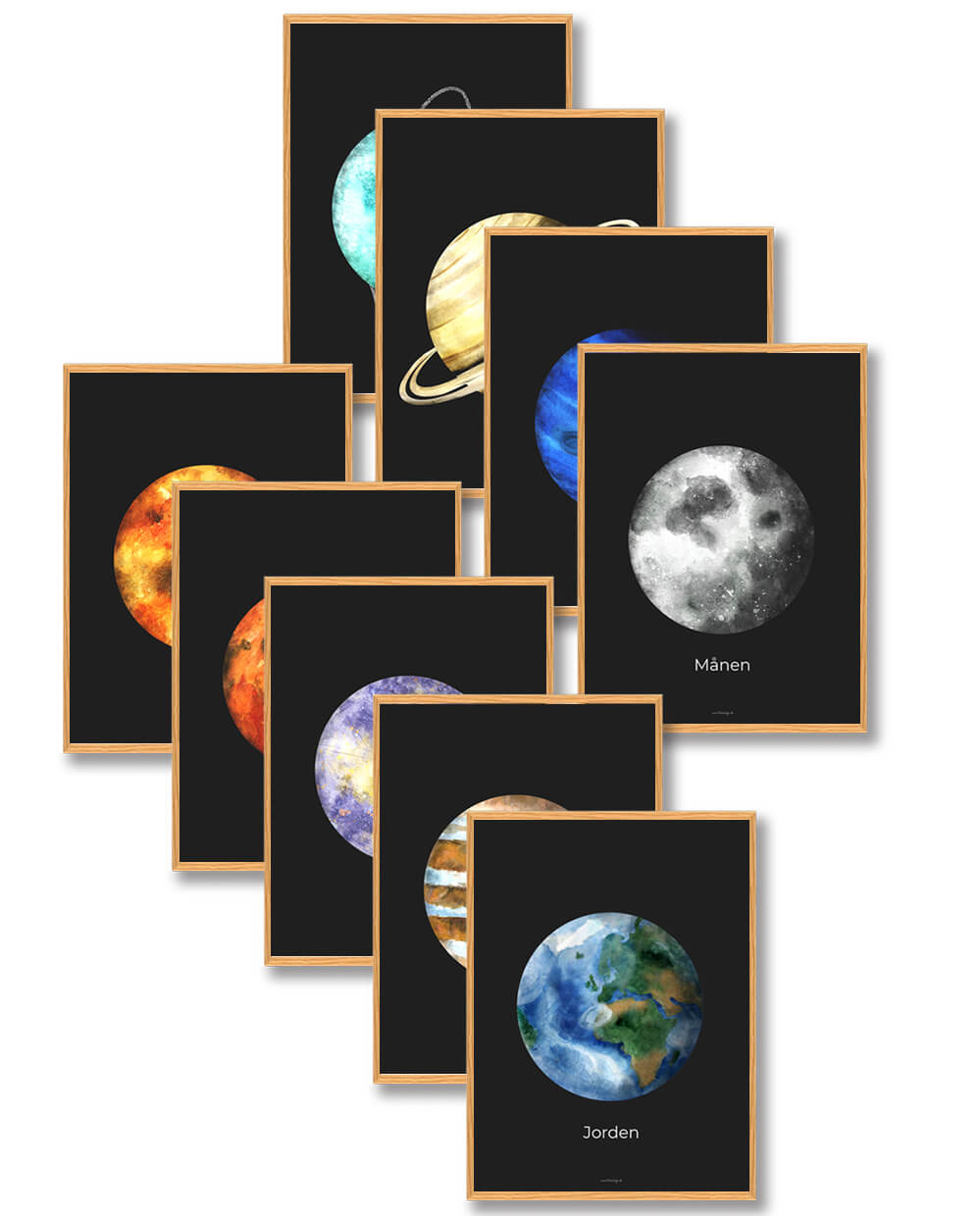 Vi har fundet Samlet Pakket: Planet Plakater fra Plakatdyr.dk hos Plakatdyr.dk i kategorien Plakatsæt Tilbud. Den fedeste pakke med rumplakater Har du en lille dreng eller pige i tankerne, som bare vil knuselske at få sådan en fed pakke med en masse flotte plakater med planeter på? Så behøver vi da næsten ikke at præsentere denne super pakke yderligere, for der