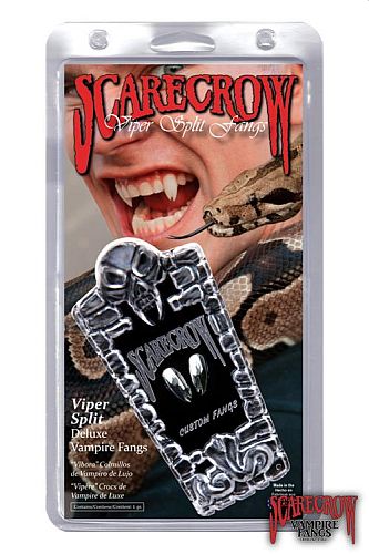 Vi har fundet Teeth – Scarecrow: Vampire Viper – Chrome Epic Armoury Live Rollespils T Nder fra !live Rollespil hos Kelz0r.dk i kategorien T195166nder. The Original Scarecrow Vampire Fangs – "Viper Split Deluxe Custom Fangs" are brand new, totally unique, and very wicked! Each fang cap is split into two prongs. They may fit either canines and/or incisors or bottom teeth. Fast, easy, comfortable
