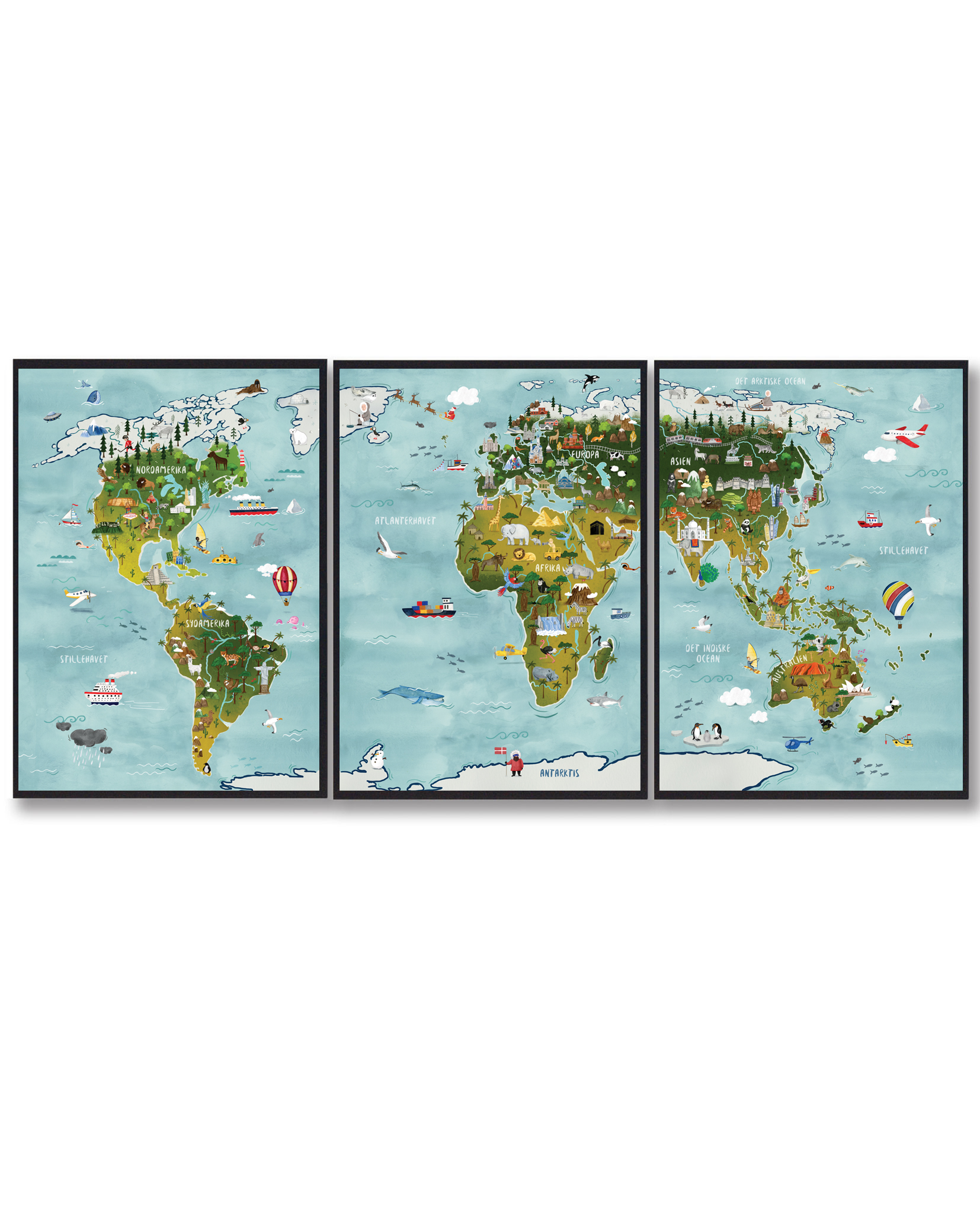 Vi har fundet Verdenskort Til Børn – Håndtegnet Plakat Delt fra Plakatdyr.dk hos Plakatdyr.dk i kategorien Verdenskort For Børn. Verdenskort til børn – håndtegnet plakat (3 delt) Vores specielle Verdenskort til Børn er delt op i tre smukke plakater, der tager børnene med på en fortryllende opdagelsesrejse. Med lyse og levende farver vil børnene blive taget med på en lærerig rejse